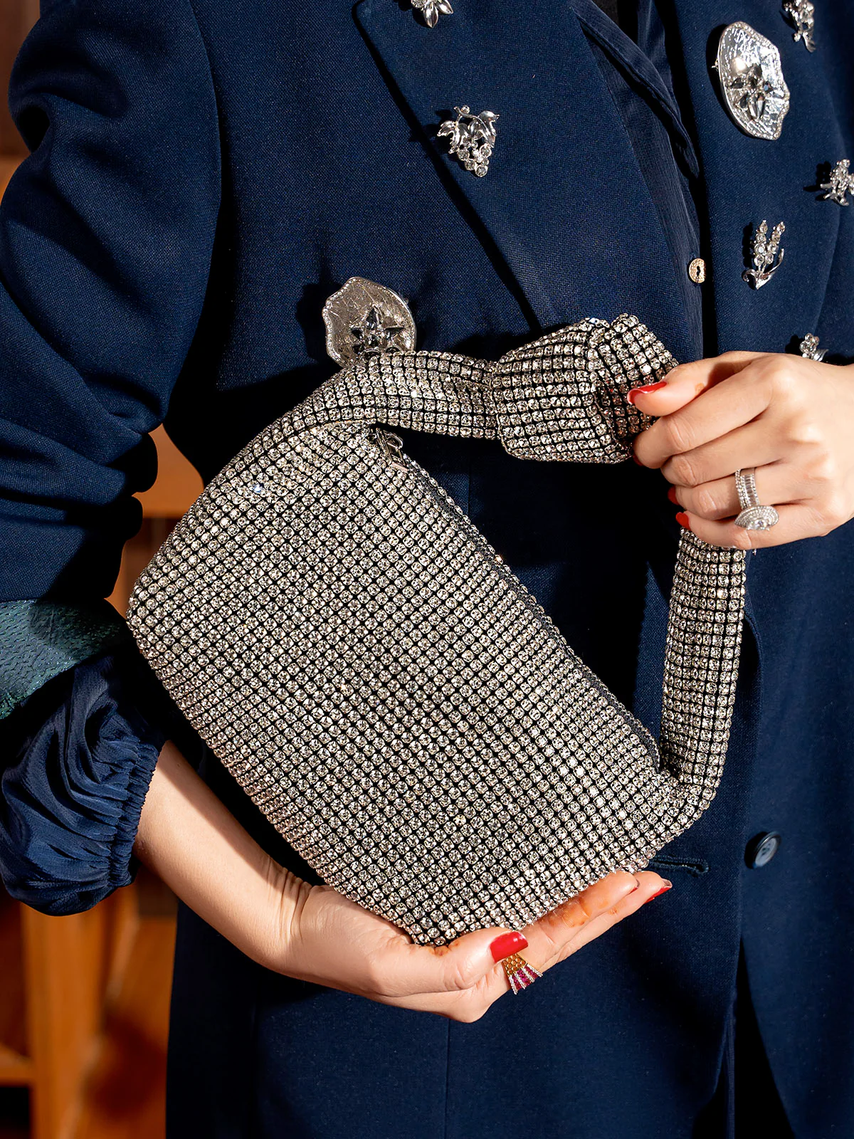 A sleek and stylish women’s fancy bag designed to elevate any evening look. With its refined shape, smooth finish, and eye-catching details, it adds the perfect touch of glamour to parties, weddings, and formal events. Compact yet practical, it holds your essentials securely while keeping your style effortlessly polished.