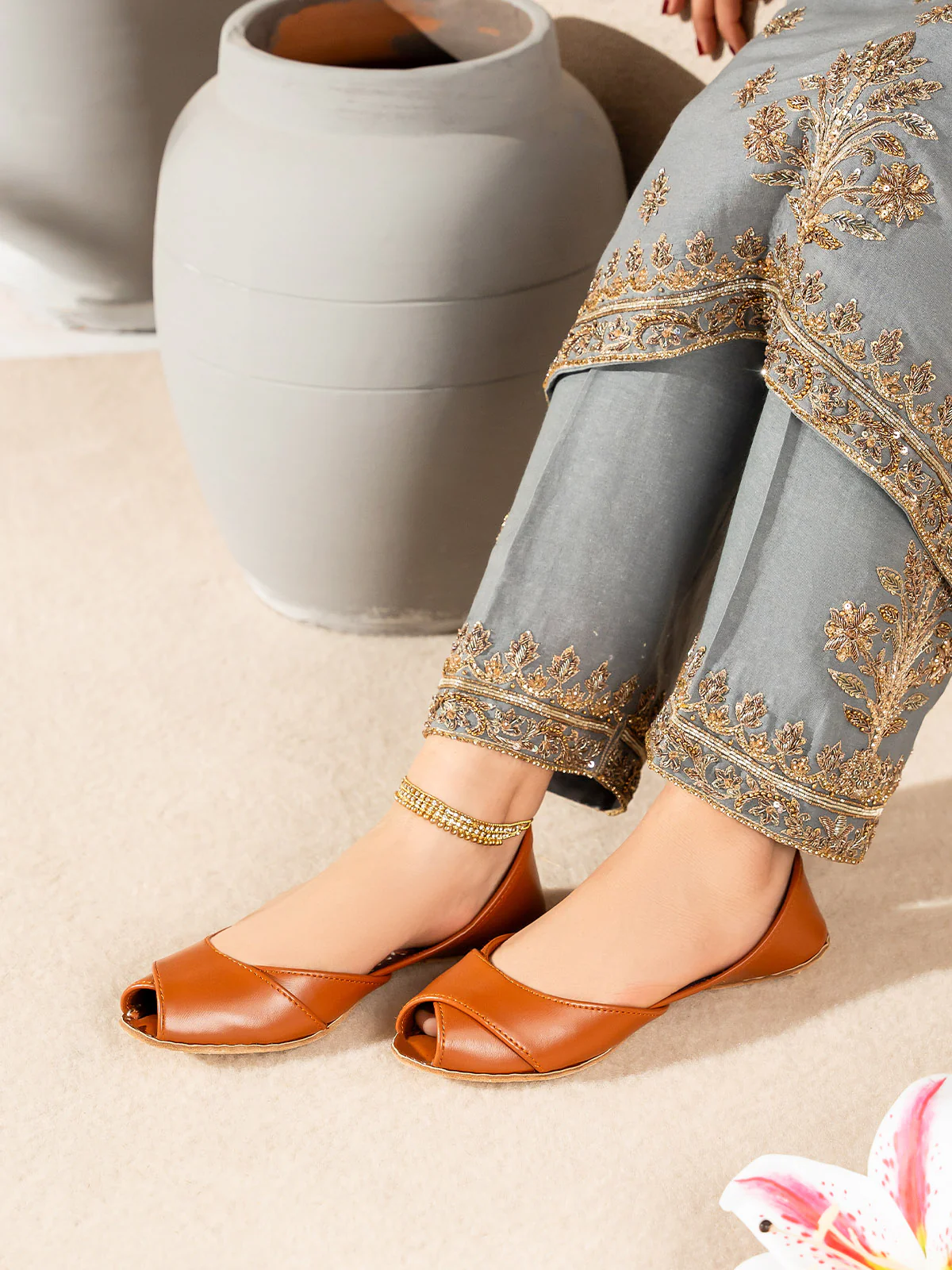 Keep your look effortlessly stylish with this simple open toe women khussa. Designed for everyday comfort, it features a soft inner lining and flexible sole for easy wear. The open toe style adds a modern touch to its traditional design, making it perfect for casual outings or summer days.