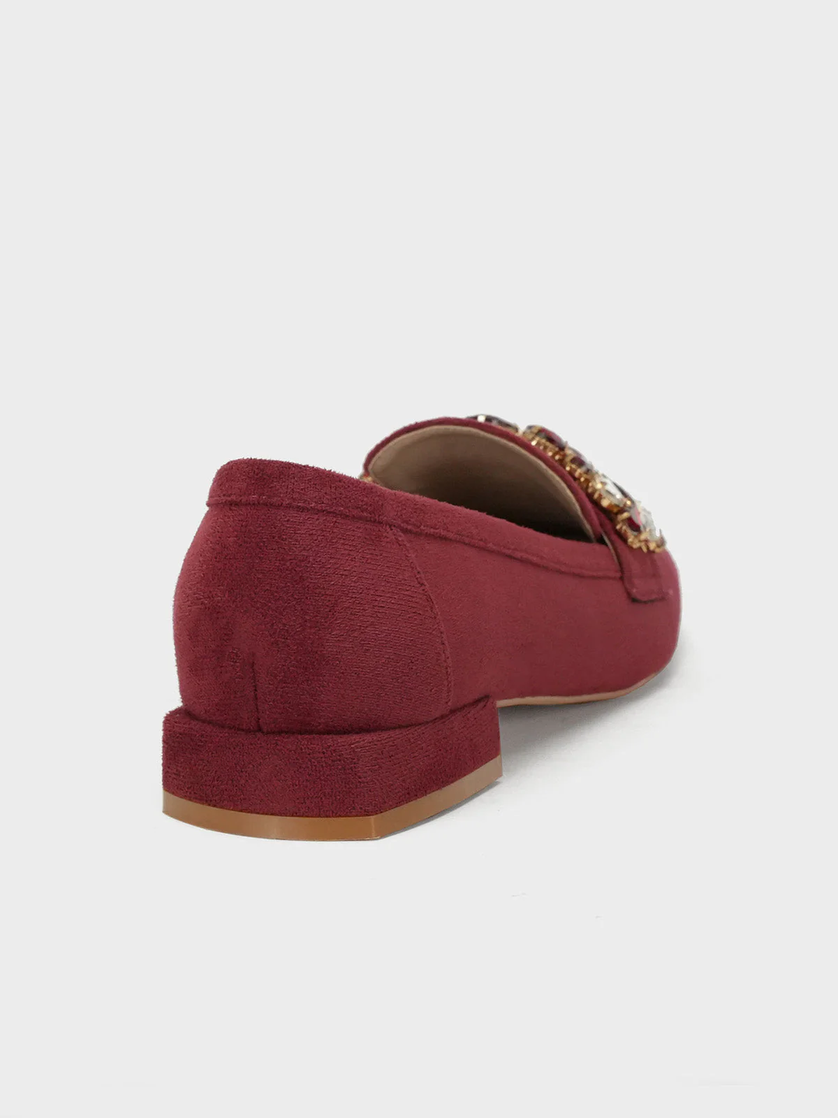 These classic almond toe-style flat slip-on pumps are the perfect blend of comfort and style. Featuring dimante detail on the vamp, they add a touch of charm to the timeless design. Crafted from soft, durable material, these flats offer easy, all-day wear, making them ideal for both casual outings and smart-casual ensembles.
